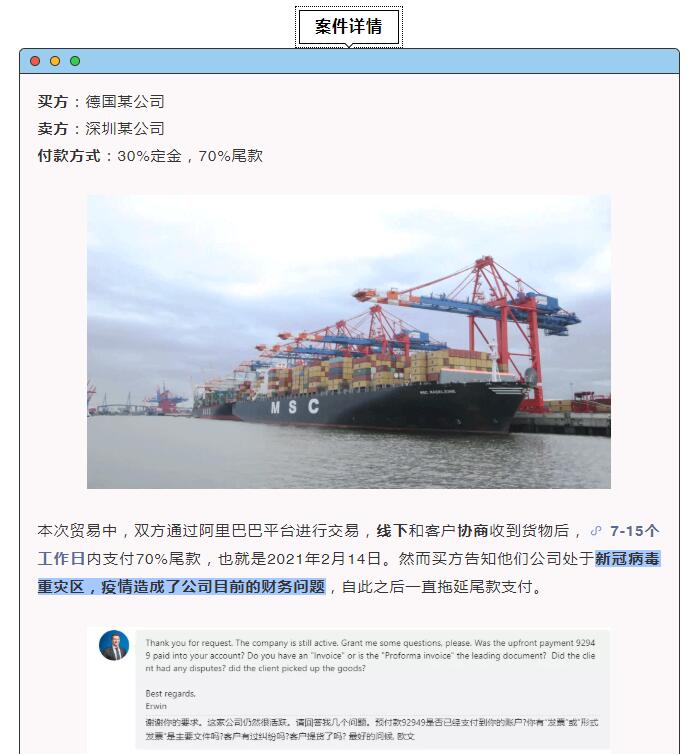最近外貿圈聽(tīng)過(guò)最多的欠款原因,大概是疫情了,許多買(mǎi)方借由疫情的幌子拖欠尾款,時(shí)而消失2-3個(gè)月,讓外貿人著(zhù)急又無(wú)奈。