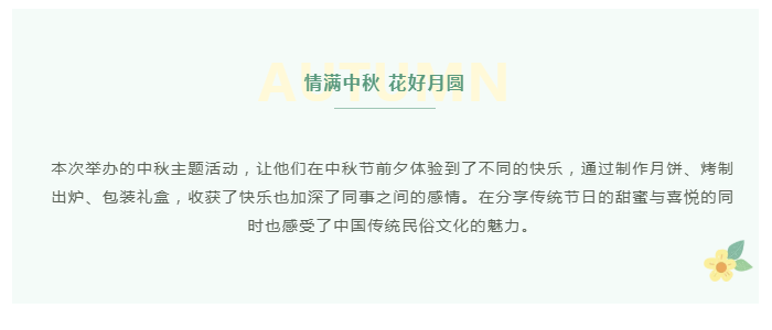 一年一度的中秋佳節即將到來(lái),為了更加深刻地感受中國傳統文化的源遠流長(cháng),集團開(kāi)展DIY月餅活動(dòng),并邀請了21位壽星一起做月餅,一起過(guò)個(gè)不同的生日。