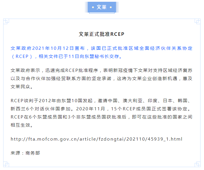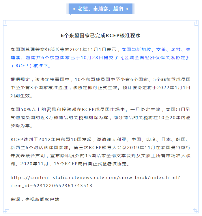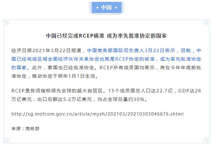 喜大普奔!全球最大自貿協(xié)定RCEP已達成“準實(shí)施”條件