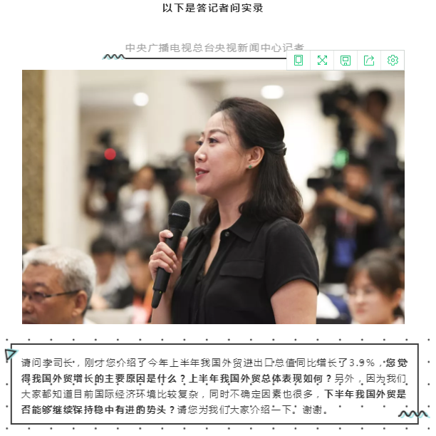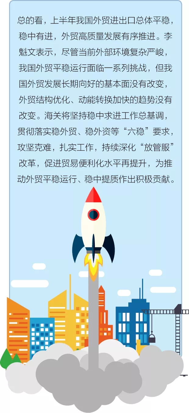 李魁文:謝謝你的提問(wèn)。今年以來(lái),世界經(jīng)濟和貿易增長(cháng)放緩,中美經(jīng)貿摩擦影響持續顯現,我國對外貿易仍然表現出很強的韌性,上半年外貿進(jìn)出口繼續保持了平穩增長(cháng)的發(fā)展態(tài)勢。這得益于黨中央、國務(wù)院的正確領(lǐng)導,得益于國內經(jīng)濟穩中有進(jìn)、高質(zhì)量發(fā)展持續推進(jìn),也得益于國家推動(dòng)新一輪高水平對外開(kāi)放,得益于各地區、各企業(yè)的攻堅克難,共同努力。