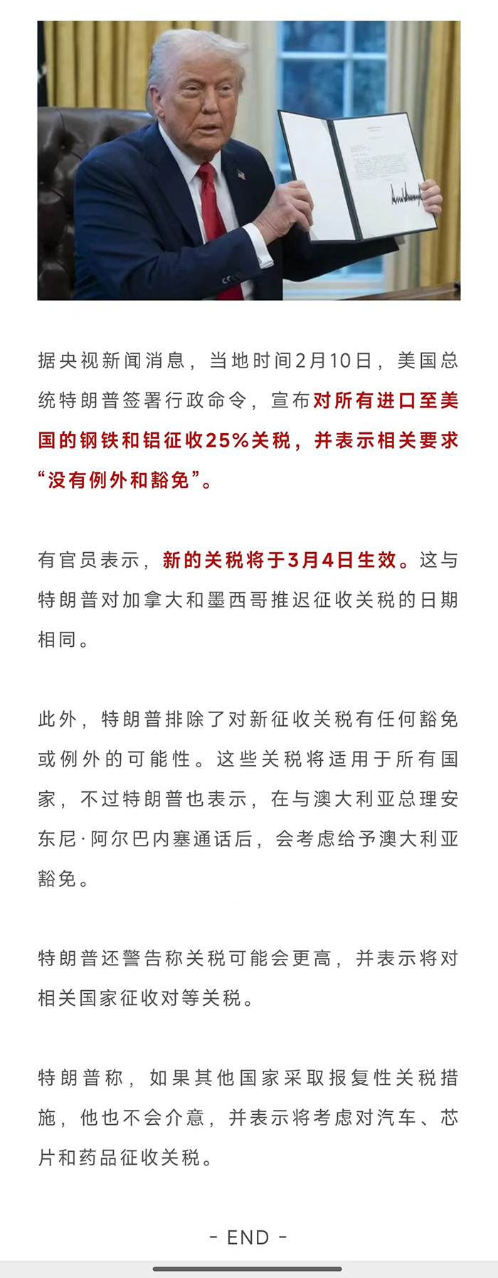 沒(méi)有豁免!3月4日生效!所有進(jìn)口至美國的鋼鐵和鋁征收25%關(guān)稅!