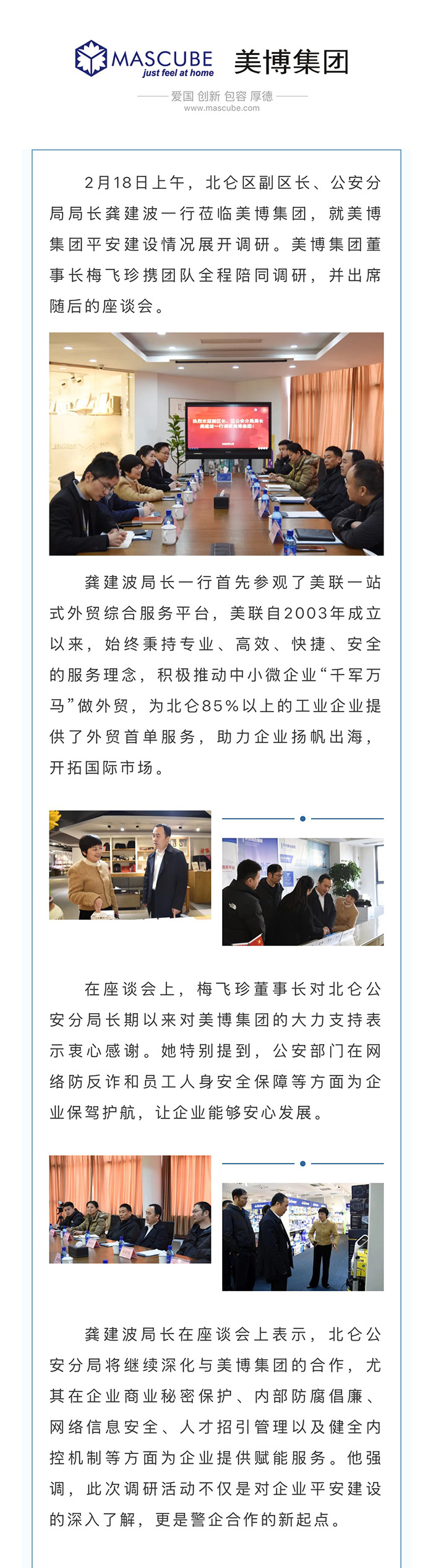 北侖區副區長(cháng)、公安分局局長(cháng)龔建波一行蒞臨美博集團調研指導