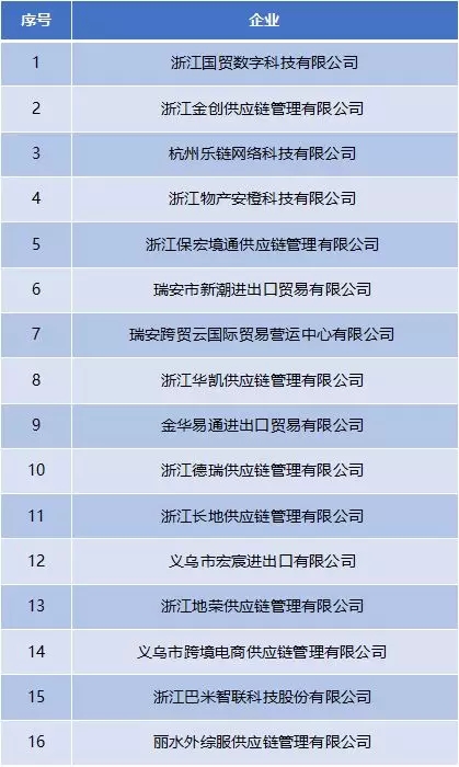 新設立外貿綜合服務(wù)試點(diǎn)企業(yè)(16家)