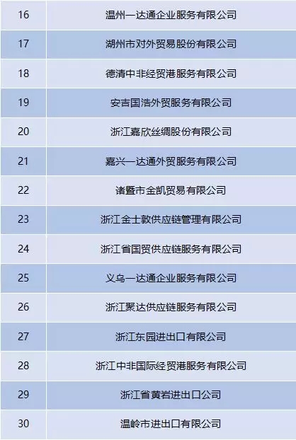 省級外貿綜合服務(wù)示范企業(yè)(30家)