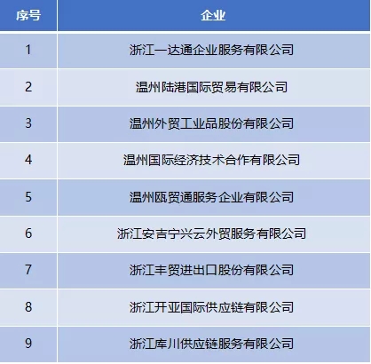 外貿綜合服務(wù)成長(cháng)型企業(yè)(9家)
